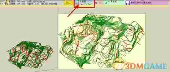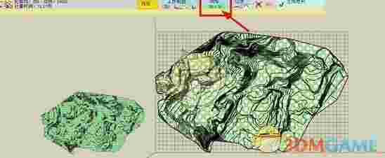 3、图中会生成一个顶视图 同时所有的等高线变成绿色备选状态 并且加入一个浅色背景衬托