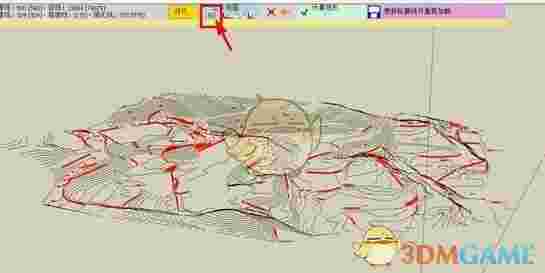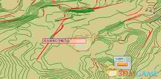 2、从左往右,先是以sketchup的正常视角单独观察原始空间等高线以及修复的红色状态区情况