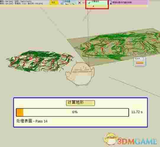 3、点击计算地形状态栏按钮 计算过程中会有等待