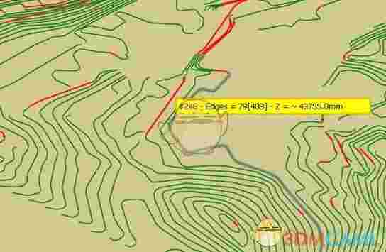 2、将光标移动到原始的等高线上时 会显示该条等高线的长度以及高度信息等