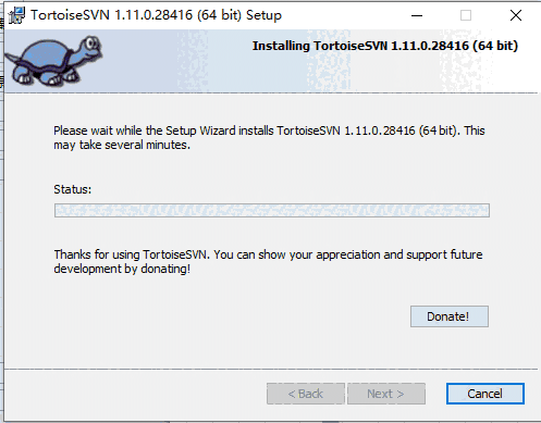 5、TortoiseSVN软件正在安装中,我们耐心等带界面中的安装进度条完成。