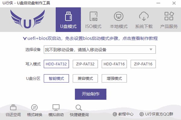 U行侠U盘启动盘制作工具是一款专业的U盘启动盘制作的软件工具,软件支持一键制作,支持各种u盘、写入保护等功能。非常方便快捷,软件界面简约,布局直观清晰。操作简单,容易上手,是一款十分实用的工具。