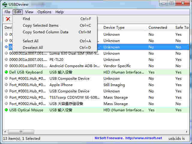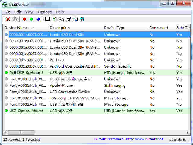 USBDeview可以列出设备的名称和描述、设备添加的日期以及最后连接的日期以及其它信息。