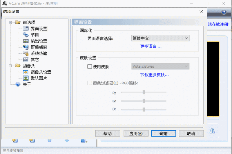 VCam虚拟摄像头是一款专业的软件虚拟摄像机的软件工具,软件可以模拟真实的摄像机骗过大部分的视频聊天软件。非常方便快捷,软件界面简约,布局直观清晰。操作简单,容易上手,是一款十分实用的工具。