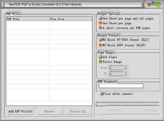 VeryPDF PDF to Excel ConverterV2.0