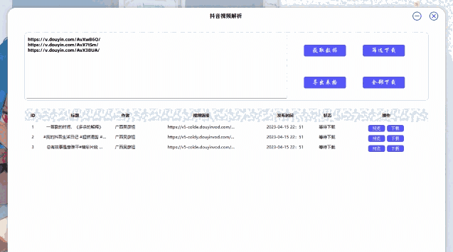 视频解析功能:可以通过复制视频链接进行解析和下载。支持批量下载,方便快捷。
