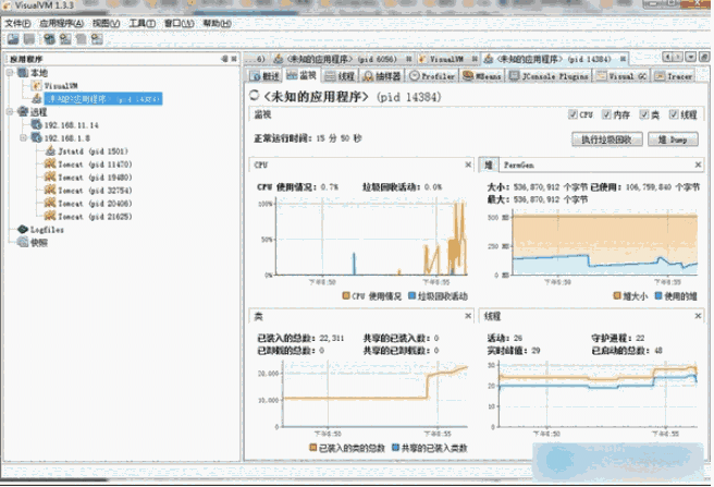 的使用率、方法的执行效率和频率等相关数据帮助我们发现应用程序的性能瓶颈。我们可以通过 VisualVM 的监视标签和 Profiler 标签对应用程序进行