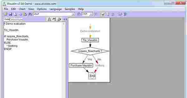 visustin是一款流程图制作助手,使用它可以将图表转化为DCX、GIF和MHT压缩文件,也可以用PNG和GIF格式的图像文件保存代码而且还支持多种编程语言,让你能够有效率的对代码进行编辑,还可以使用流程图来维护您的代码;恢复丢失的代码。