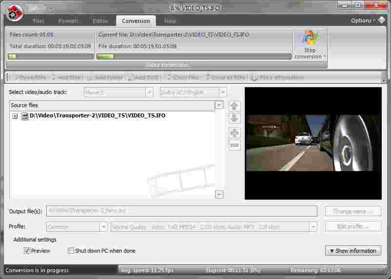 创建由多个剪辑组成的视频时,您需要做的就是按必要的顺序打开源文件,在设置中设置“将文件合并为单个”选项,然后将它们转换为任何格式。