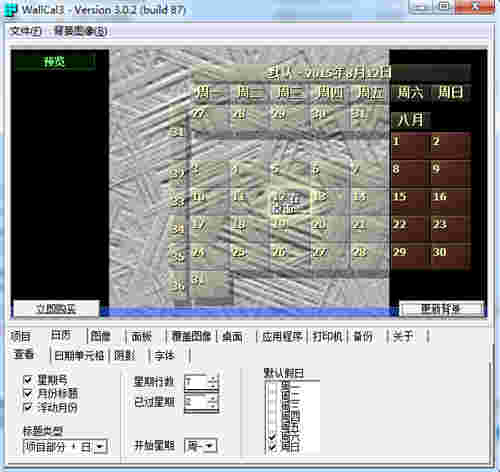 WallCal3桌面日历是一款有趣的桌面日历的工具软件。它可以自动更新更换壁纸,也可以自定义字体、单元格以及阴影等众多设置,可玩性还挺高,十分方便快捷,界面简约,布局直观清晰,操作简单,极易上手,是一款不可多得的利器。