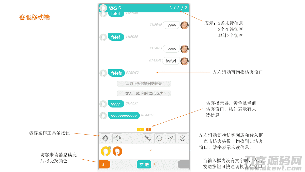 4. 客服人员使用电脑或移动设备浏览器均可登录提供服务;