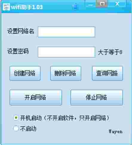 以后每次开机只需点开启网络即可,如嫌麻烦可以选择开机启动(不会打开软件,只开启无限网络2);
