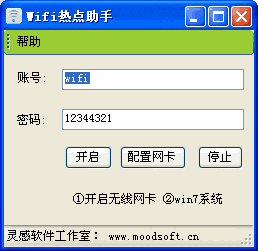 wifi热点助手是一款专业的wifi热点上网的软件工具,软件可以同通过电脑的无线网卡建立一个新的wifi热点提供给其它设备进行连接上网。非常方便快捷,软件界面简约,布局直观清晰。操作简单,容易上手,是一款十分实用的工具。
