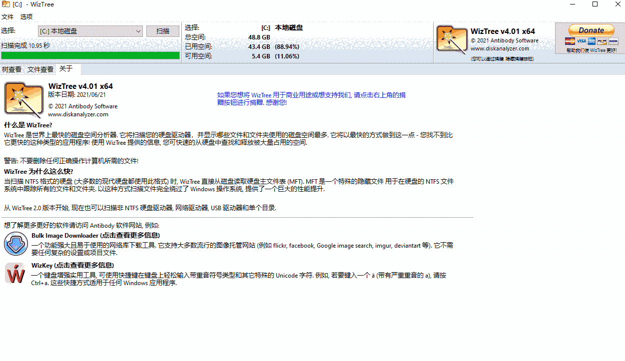 WizTree是一款专业的磁盘空间分析的工具软件。使用者可以通过软件对磁盘进行快速扫描和分析整理,软件可以帮助使用者清理一些不必要的存储占用文件,释放空间以防存储空间爆满运行加载访问时出现卡顿。软件的界面很简单,功能按钮布置在界面上方,符合操作习惯。