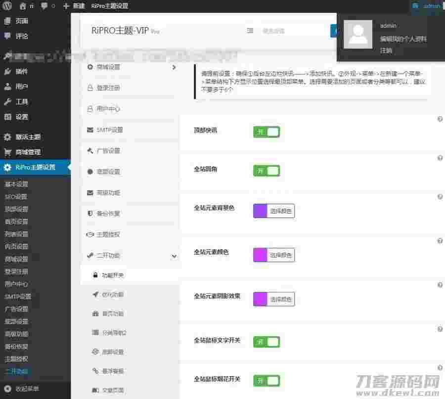 WordPress资源分享下载站日主题RiPro主题全站美化包 集成到后台功能