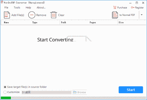 WordtoPDF Converter是一款专业的word文档的转换工具软件。使用者可以通过软件将word文档格式转换为PDF格式的文件。支持批量转换文件,支持预设转换后的文件设置等功能。软件的使用方法也很简单,将文件拖拽进软件点击start即可开始转换。