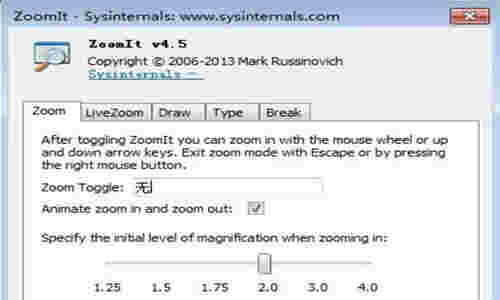 ZoomIt是一款专业的投影演示的辅助工具软件,支持改变倒计时文字的颜色、支持截屏、屏幕放大、屏幕标注等功能。十分方便快捷,界面简约,布局直观清晰,操作简单,极易上手,是一款不可多得的利器。